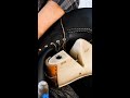 فروشنده کفش فروشی در حال تست فرق بین چرم مصنوعی و طبیعی فقط با لمس